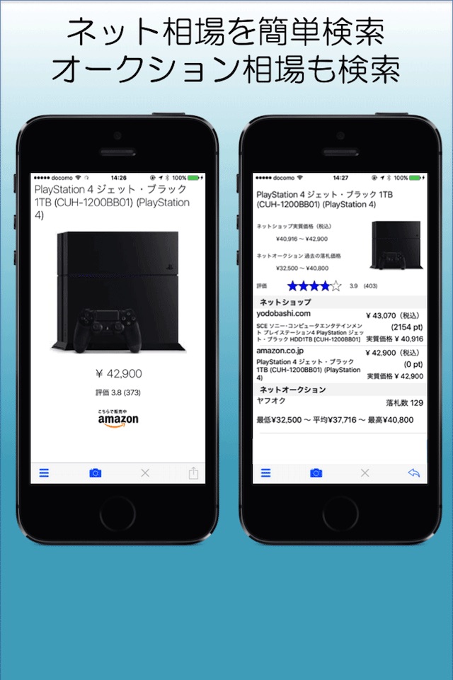 1. バーコードを読み込むことで商品を検索しネットでの相場を表示
