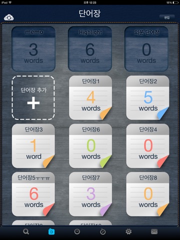- [단어장, 암기모드] 나만의 단어장을 무제한 만들고 관리(단어 리스트를 날짜별/가나다별로 정리 가능, 외운 단어장 별도 관리 가능), 플래시카드를 이용한 암기모드