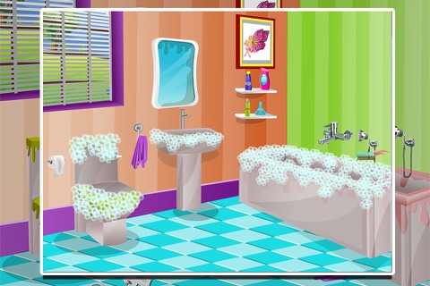 Princess is in a hurry, so she will not be able to clean up the bathroom after the bath but she doesnt want her bathroom to be a huge mess.