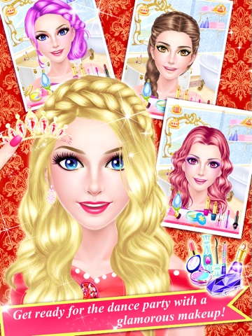 Finish your prep by finding the perfect ball gown for the princess. Try on lots of different dresses in various colors until you find the one that goes perfectly with her makeup. Highlight the look with accessories, including jewellery, handbags and of course, tiaras! She’ll shine like a diamond at the dance party tonight!
