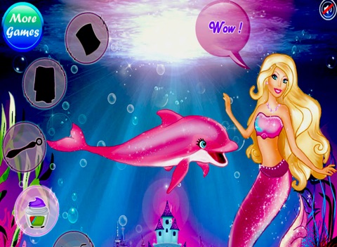 Meet a sweet princess who wants to swim and spend all day with her cute dolphin. He is very friendly and has a lot of friends deep in the ocean. Today our princess ask for your help to clean the dolphin and make him look awesome. Start the game and use some cleaning lotions to wash the dolphin and then remove the spots from his skin. Finally our dolphin should look amazing and you have the opportunity to change the color tones of the dolphin and add some nice accessories that will make the dolphin be in the spotlight near the princess. Enjoy this new princess mermaid game and dont forget to leave us a review if you like this game!