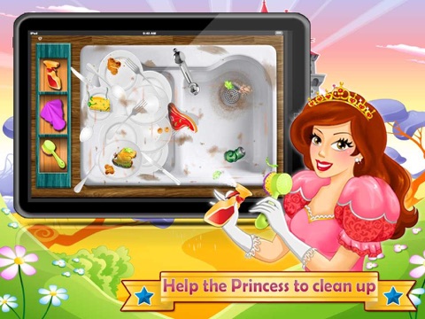 Princess Kitchen Wash is a brand new royal rescue cleaning games for free. Last night there was a big party at the castle, it was a great fun but now the kitchen is messed up and need a thorough cleanup, the Princess is alone and wants a little help in cleaning.