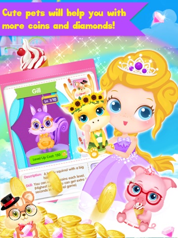 The mouse, squirrel, kitty and fawn, the 4 cuties will help you earn more coins, diamonds and energy. And each pet has its own special skill, which is waiting to be activated.