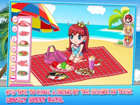 These three little princesses love having a picnic together. Its time to have a picnic by the seaside in these lovely sunny days. Come on, prepare your favourite snacks and drinks, grab your picnic basket and join them! Have fun creating a royal picnic table!