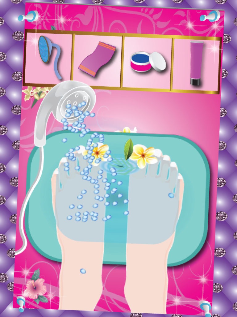 The manicure salon contains all the procedures of the beautification of princesss hands. Cut the nails of the princess, use a nail filer to file the nails and to give them a perfect look. Apply hand cream to remove the dryness and the red spots on the skin. Then wash the princesss beautiful hands with the shower and then dry the hands with a towel. Now. apply nail polish shades and put on the bangles around her wrist to make it look more elegant and beautiful. So, download this exciting, amazing, stylish and elegant princess nail art salon and manicure & pedicure game for stylish girls and kids.
