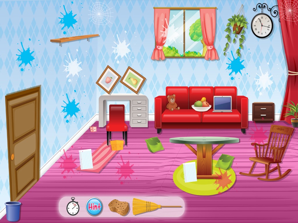 This is a crazy and exciting room decoration, makeover and cleanup game. Not only that but it is a learning cleaning spa salon game for kids. This game is a fun fiesta for all but besides that it also teaches the children and kids the concept and importance of cleanliness in their lives. This princess has returned back home after a week and she has found out that the home and her living room is in a completely messed up situation. Help the princess in cleaning the room with this cleaning spa salon and cleanup game. Use the mob and soap sponge to clean the dust and walls. Also help the princess set and decorate the room as it was before. Clean and arrange all the things in a beautiful manner. Decorate and adjust the wall hangings. Redo the things in the cupboard. wipe up the floor and decorate the bed etc.