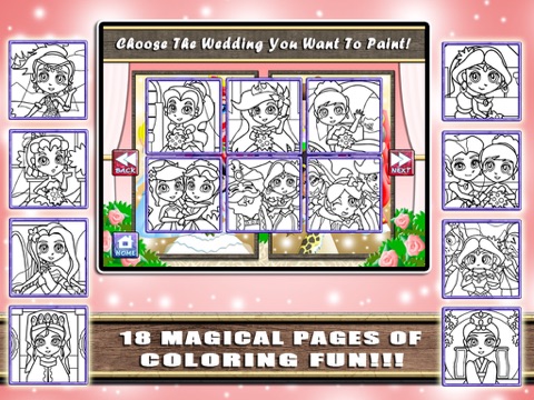 Check out some of the features included in this beautiful Wedding Dress Coloring book game!