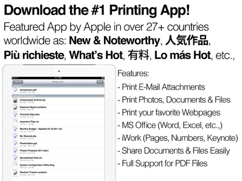 Print and Share Microsoft Word, Microsoft Excel, Microsoft PowerPoint, Pages, Numbers, Keynote (iWork) and Adobe PDF files. With the Print App, Easily store documents and files for easy access anywhere with the Print File Manager.