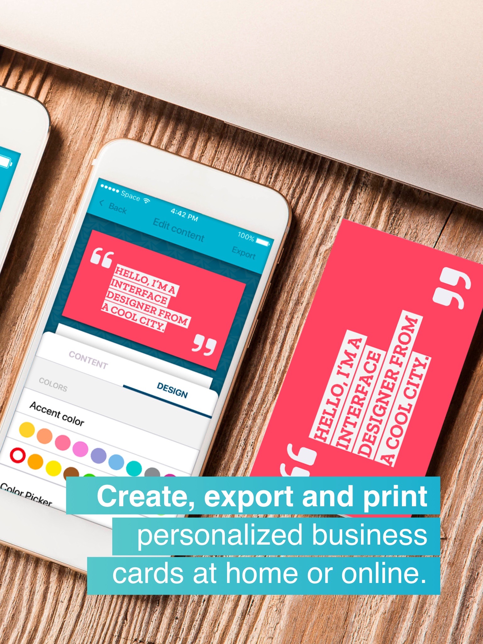 Print! is an easy and convenient way to create and print professional looking business cards from your iPhone or iPad.