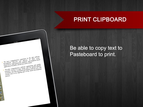 ★ Print Pasteboard: you can copy text, image, web page content to Pasteboard to print. You are also able to edit content on the Pasteboard, for example: edit text content, change font of text; move, scale, rotate and turn on/off color for image.
