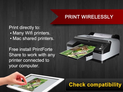 This app will use wifi to print directly to many kinds of printers and any printer that can be shared from your Mac via Printer Sharing (System Preferences -> Sharing -> Printer Sharing). The printer must be on the same wifi as your ID. For Windows users, printers can be shared via our free PrintForteShare (application on Windows). Please visit www.print.liforte.com to download.