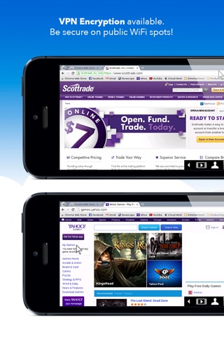 ▶ Secure VPN: Premium connections pass through an SSH-encrypted* tunnel. No browsing history or cache is ever stored on your device.