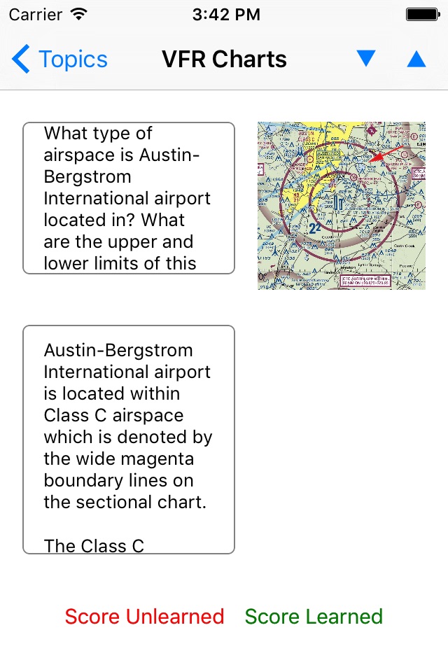Questions are presented in flashcard style. Graphical images are provided when needed. When the student views the suggested answer, they can indicate if they answered satisfactorily or if they would like to review the question again. Learning all of the questions allows the student pilot to be prepared and confident for the FAA Private Pilot Practical Test for Airplane.