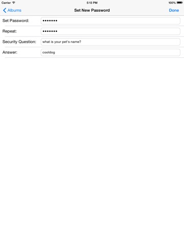 Albums can have password. When you create an album, you can specify whether it is protected by password. Once specified, the album will only be revealed after the correct password is input.