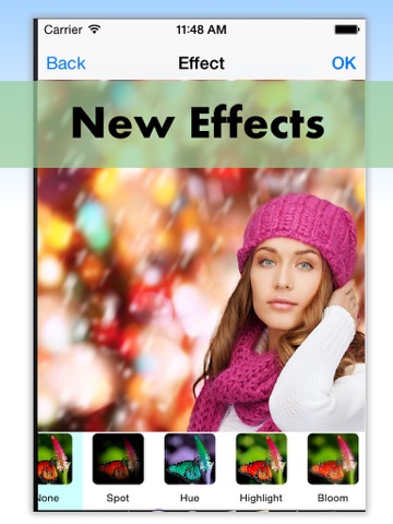 Here is just a short list of some effects contained in the application: Sepia, Black and White, Pencil Paint, Swirl, Neon Light, Hue Green, Rainbow, Emboss, Comic Ice, Blur, Pinch, Wave, Old Film Frame, Solarize, Old Photo, Oilpainting, and there are many many more!