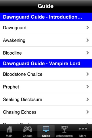 The entire app is alright, theres a lot of things that personally I find to be obvious for the glitches and theres also a large amount of glitches and tricks Ive learned that arent in here. The race guide isnt really necessary from the looks as when it comes down to it; at level 81 it doesnt even matter for the skills you started with, and the game tells you what the racial powers are. You should also update the achievements section; its missing Dawnguard achievements.