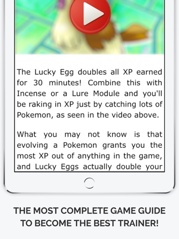 With our app you will find the best way to control your Pokémons, how to catch them and the best ways to train them. Enjoy with our great content: things to do first, how to catch pokemon, things pokemon go doesnt tell you, pokestops, how to level your trainer, how to train your pokemon, eggs and hatching, level rewards and unlockable items, items list, shop, how to become a gym leader, teams and gyms and cheats and secrets.