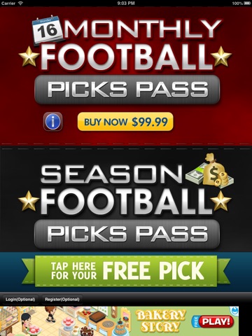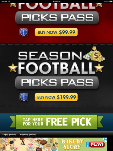 As long as you have your apple iPhone, iPad or any apple device, youll be able to choose between our exclusive Free Football Pick of the Day, or one of our three football pick packages to help you become a Pro Football Winner throughout the entire Pro and College Football Season.