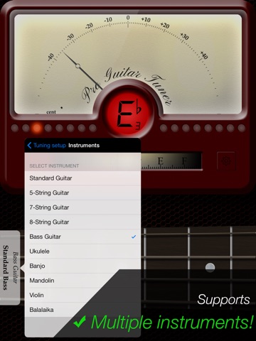 Because Pro Guitar Tuner is chromatic you can tune most types of stringed instruments.