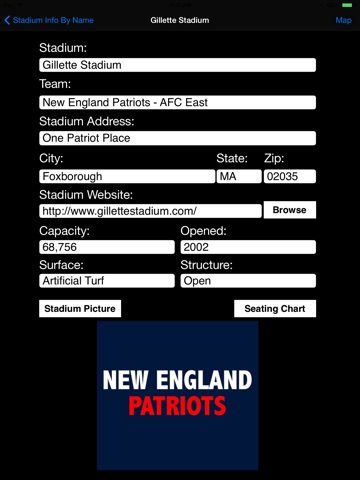 At your fingertips, you have access to the contact information every Pro Football fan would like to know about their teams. Not only can you instantly acquire contact information on every Pro team and stadium address, but in seconds you will be able to map the Pro team and stadium address. The search feature is comprehensive and easy to use.