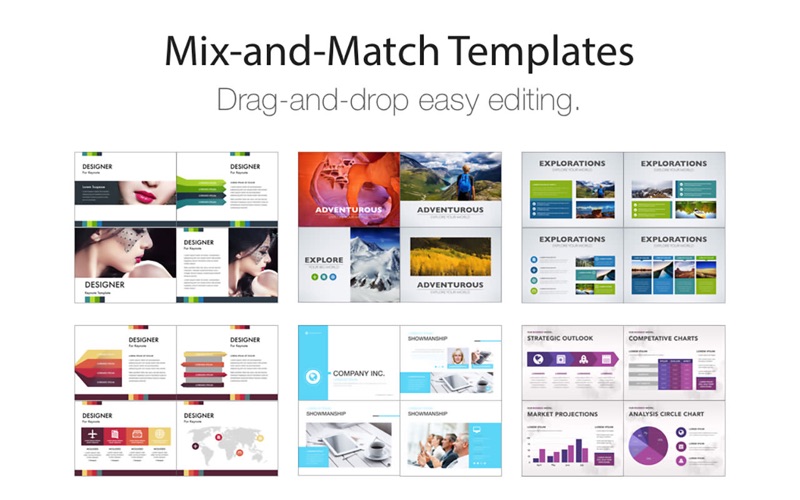 These stylish and modern layouts make it simple to create and deliver beautiful presentations. Impress your audience and bring your ideas to life with these drag-and-drop easy to use designs.