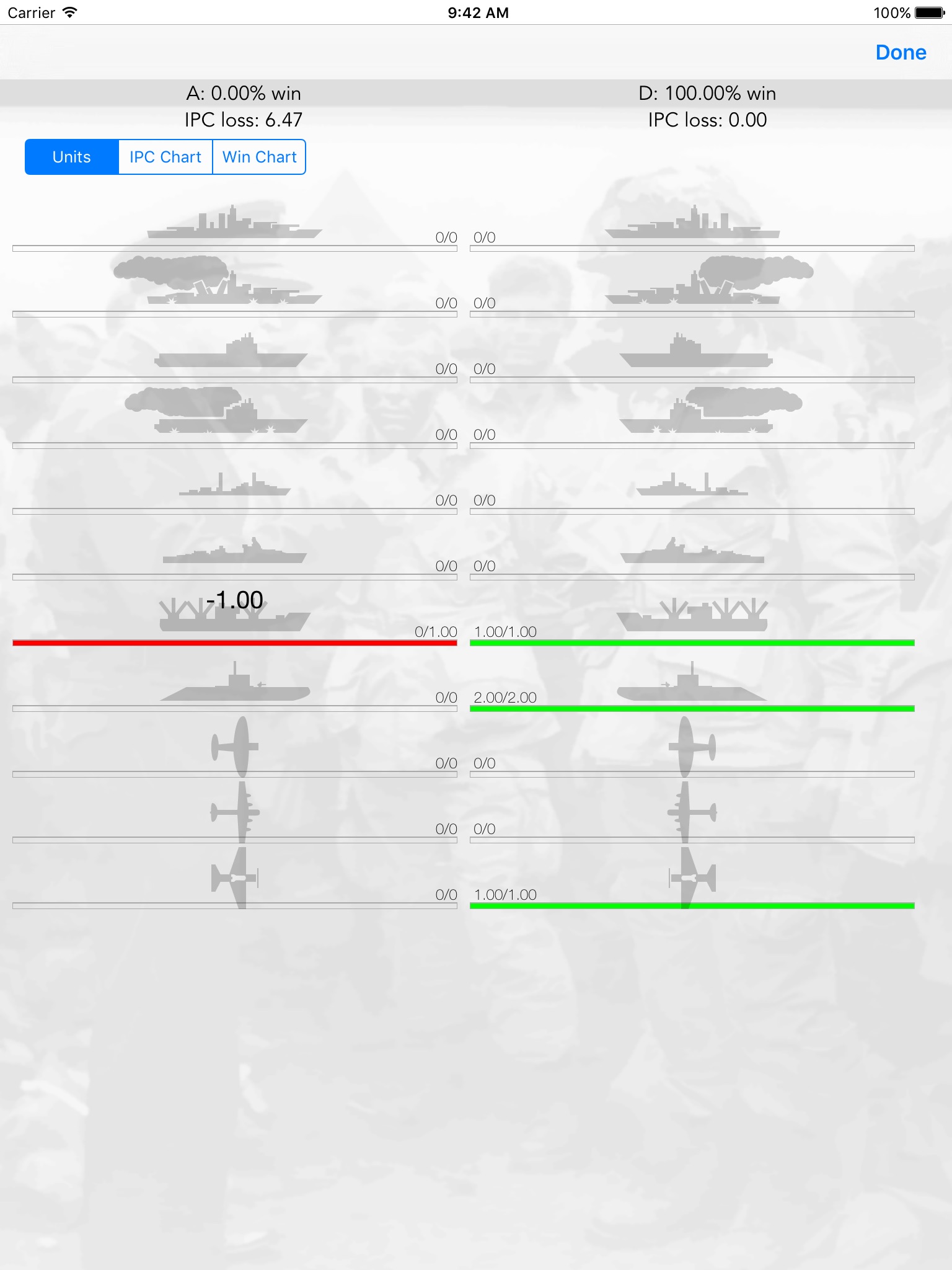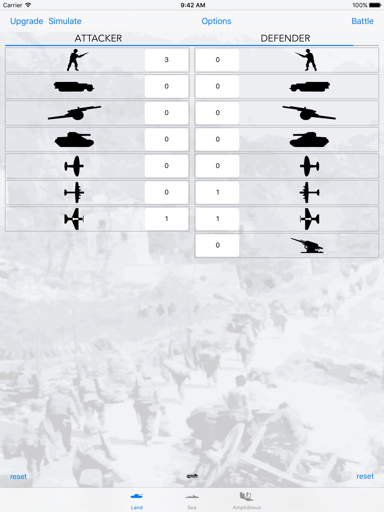 Note that this application is a simulator and dice roller, NOT the actual Axis and Allies game itself. This free version is provided to evaluate the simulator and is restricted to a very limited number of units of units; to permanently remove that restriction, a one-time in-app purchase is offered. (We kind of hate in-app purchases, but this way one can validate sim accuracy works before committing).