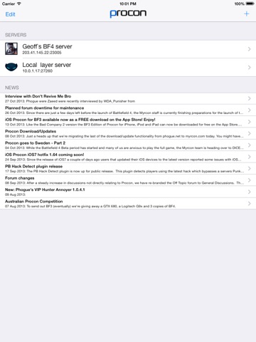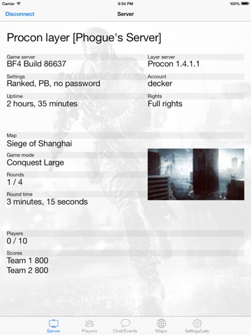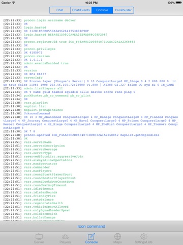 In addition to that it is compatible with the layer server architecture of "Procon Frostbite" for Windows PC (please visit http://myrcon.com/ for more details). Logging onto a layer server lets you take advantage of Procons sub-admin account management and plugins even on your iOS device.