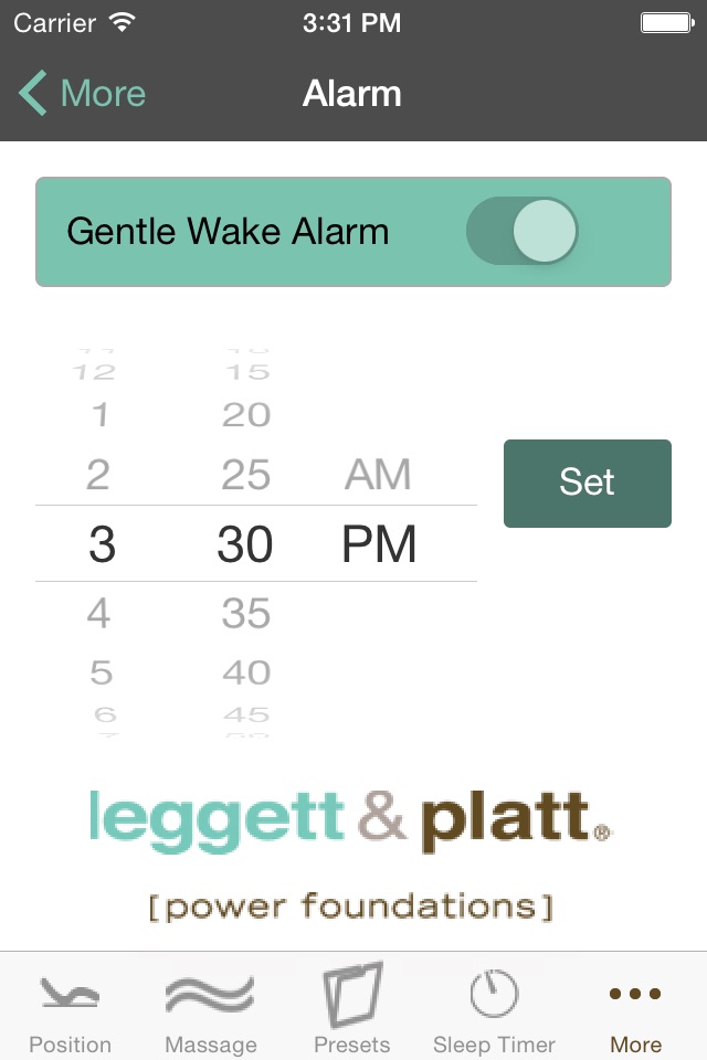Prodigy™ by Leggett & Platt Inc. is the premier application to operate your Prodigy™ bed. Prodigy™ is the first bed that puts today’s advanced technology at your fingertips. Replace your standard remote control with this application to control functions of your bed and integrate your iPhone or iPod Touch internal alarm clock to command your bed to the Gentle Wake Alarm setting of your Prodigy™.