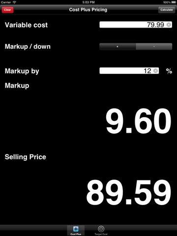 Firstly, the app allows for cost plus pricing, allowing the user to markup the cost of the product by a margin desired. This then gives you the Selling price. A