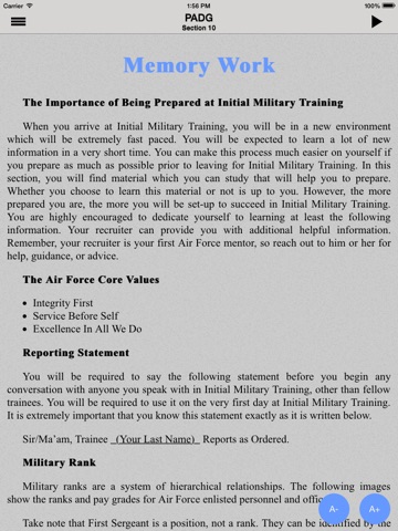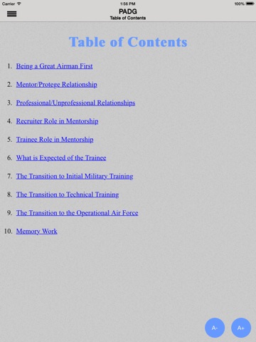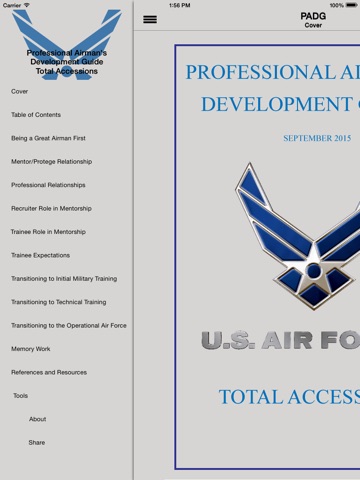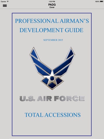 The importance of the Air Forces mission and inherent responsibility to the Nation requires its members to adhere to higher standards than those expected in civilian life. As Airmen, we are proud of our high standards. Through self-discipline, we adhere to them, and we hold our fellow Airmen accountable to follow our standards. This publication establishes broad expectations of Airmen prior to, during, and after BMT. This app enables access to the content of the Professional Airmans Development Guide for users of mobile devices and applies to all Air Force uniformed personnel (Active Duty, Air Force Reserve, and Air National Guard) and civilian personnel. Topics covered are: Being a Great American Airman First, Mentor/Protégé Relationship/ Professional Relationships, Recruiter Role in Mentorship, Trainee Role in Mentorship, Expectations of the Trainee, The Transition to Initial Military Training, The Transition to Technical Training, The Transition to the Operational Air Force, and Memory Work.