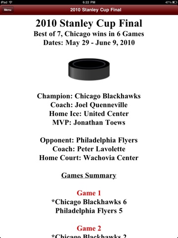 This application is perfect for every sports fan who loves to have instant access to championship sports history. Compete with your friends on your sports knowledge.