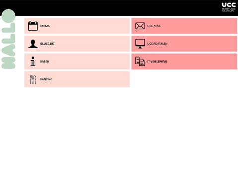 Giver studerende direkte adgang til de mest anvendte services og relevante informationer som studerende i UCC. Formålet er at de studerende har studiedriftsinformation lige ved hånden, som f.eks. deres skema, studiezone, mail og id.ucc.dk