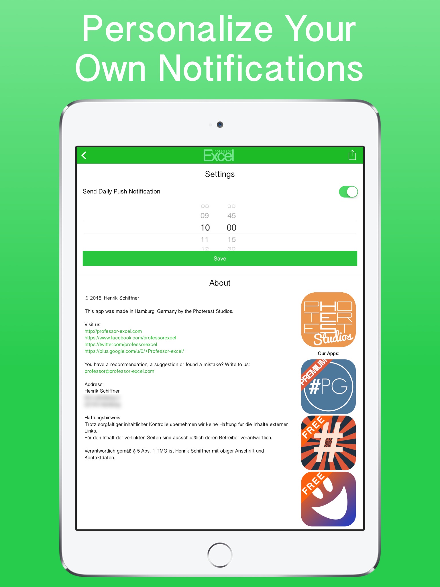 Microsoft Excel is the number one software in the business world. Mastering Excel enables you to finish tasks faster, makes your results more reliable and you can gain respect from your colleagues. All you have to do: download "Professors Daily Tips for Excel" and receive one useful Excel Tip every day.