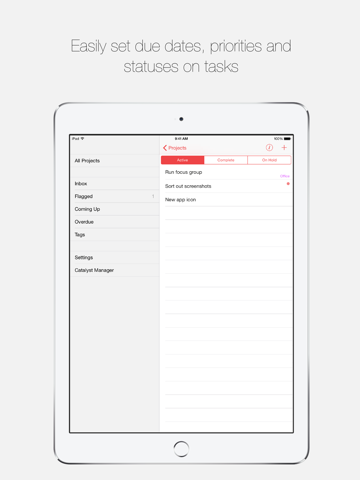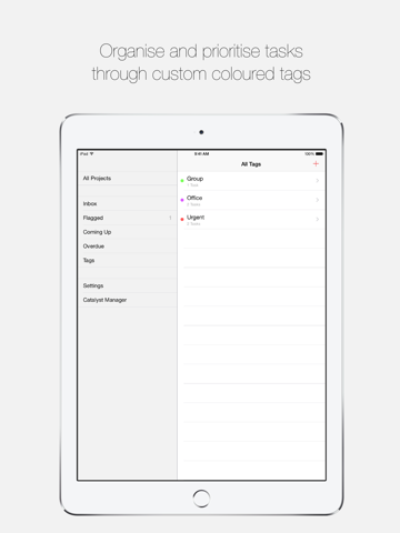 • Organise tasks with Projects, Tags, due dates and priorities