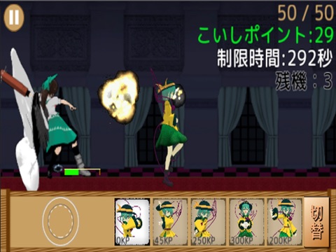 左下のバーチャルパッドを動かすと、こいしが左右に移動します。