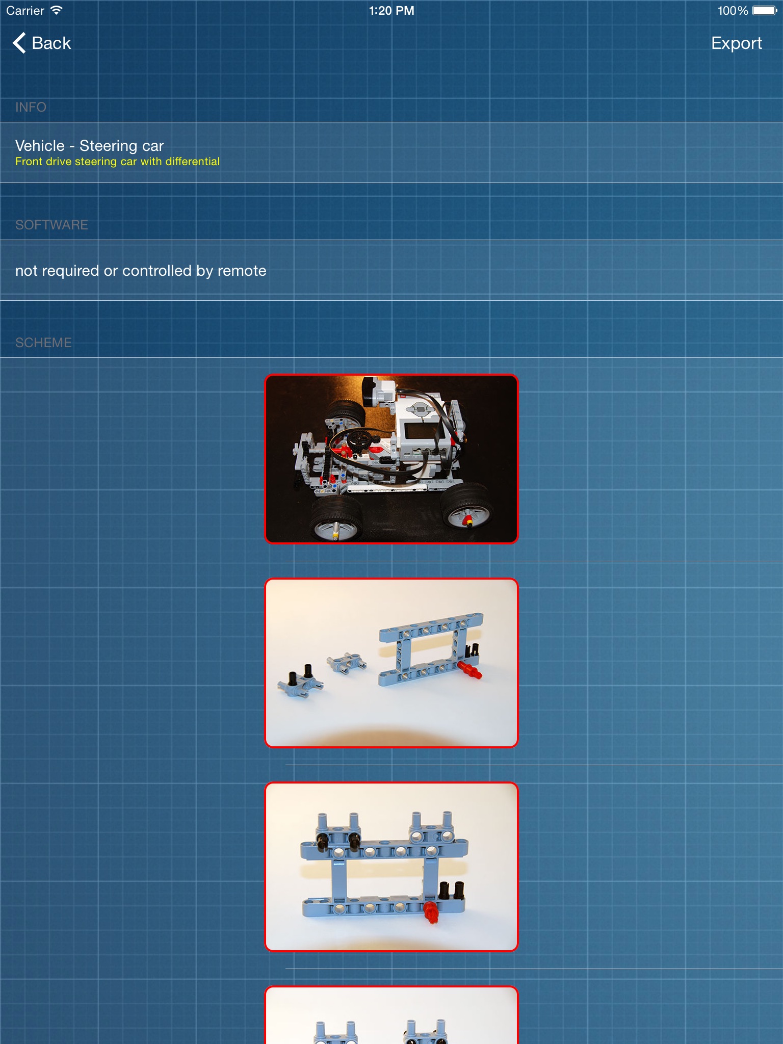 - The app also contains parts database for EV3 and NXT