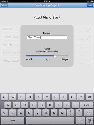 For example, if your project is homework and you have two tasks, one to complete a short math assignment and another to complete an essay, you would mark the math as a small task and the essay as a big one. That way when you check off math it wont say 50%, it will more likely say somewhere around 20%!
