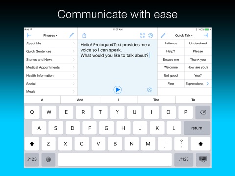 • Smoothly transition between devices, thanks to Proloquo4Text’s consistent navigation on iPhone and iPad