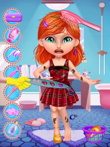 Madison is putting on her cute new outfit for the party tonight, but it looks like her puppy has ruined it! Her dress is covered in mud and ripped to shreds. She needs your salons help to fix the seams and clean the dress up before the party begins! Ava also got her dress dirty, so fix her up, too! Chloe was running through her garden when the sprinklers suddenly turned on, causing her to fall down in the mud. And Hailey is the worst of all. Shes been so busy she hasnt taken a shower in days. Smelly!