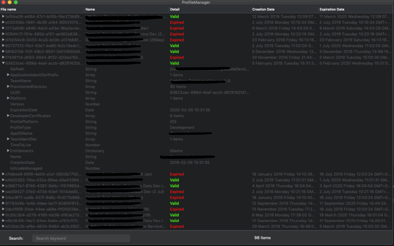 With Provisioning Profile Manager, you can manage installed provisioning profiles from your Mac and identify expired, corrupted, or otherwise unavailable entries.