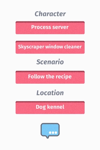 Ever find yourself at a forensics tournament and forced to judge IDA? As a coach, are you at your wits end on how to keep freshmen busy when all they want to do is IDA? Then this is the app for you! Just like you would find at a regular tournament, this app gives three options for characters, settings, and scenarios that your students can then choose from. Their selections are then compiled on one screen to easily view. Quit stressing out about coming up with the ideas for them and let this app do the work for you. Maybe with enough practice, judging IDA wont trigger such negative responses!