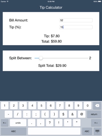 This is an easy to use tip calculator. With simple and clean interface, you can enter bill amount and tip percentage conveniently. In addition to calculate tip, this app lets you split the bill among friends.