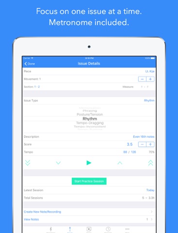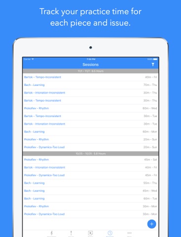 – Track your practice time by issue and piece.