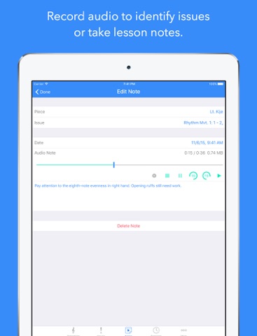 – Record audio for listening back and identifying issues, also great for lesson notes.