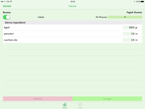 Using the Calculate switches, PropCook allows you to automatically recalculate the ingredient list based on the change of your diners or availability of your ingredients.