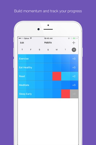Propensity is an efficient and easy to use habit manager. Keep track of and develop new habits, build momentum, set schedules and reminders, Propensity has everything you need to help you stay on top of whatever it is that matters to you.