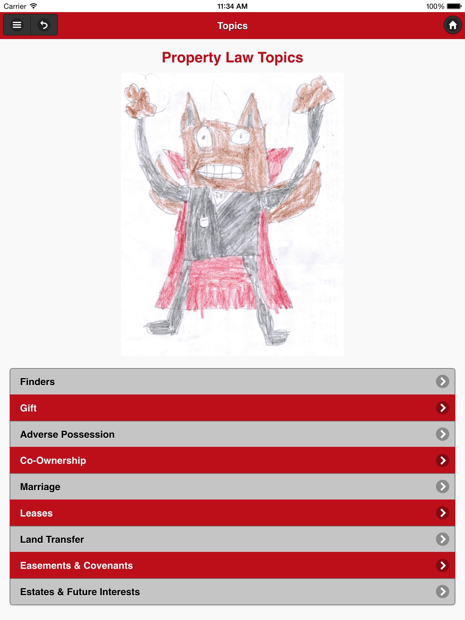 This app covers the following substantive areas: Adverse Possession; Bailment; Co-Ownership; Covenants & Easements; Deed; Finders; Gift; Leases; Land-Sale Contract; Marriage; Mortgage; Recording Act; Title Transfer. For Estates & Future Interests, download the companion app titled: Future Interests Made Simple.