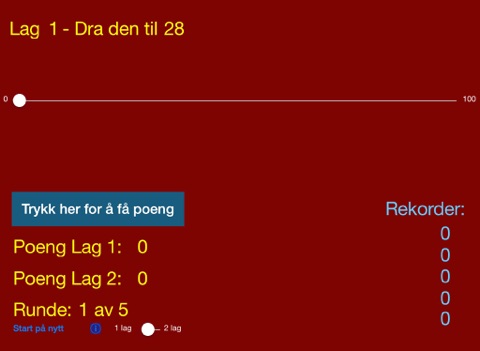 Dra slideren dit du tror er riktig - og vips! så får du poeng. Det er fem runder i hvert spill. Veksle mellom ett eller to lag.