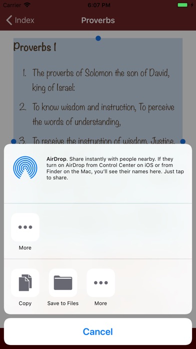 - Action button to forward the current proverb selection via email, messenger, or other loaded apps