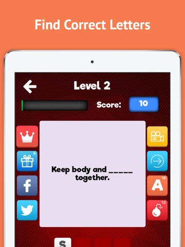 - Tap on Crown to Get Premium Package cosisting, Remove Ads and a Wrong letter as well as Filling a correct letter on the board.
